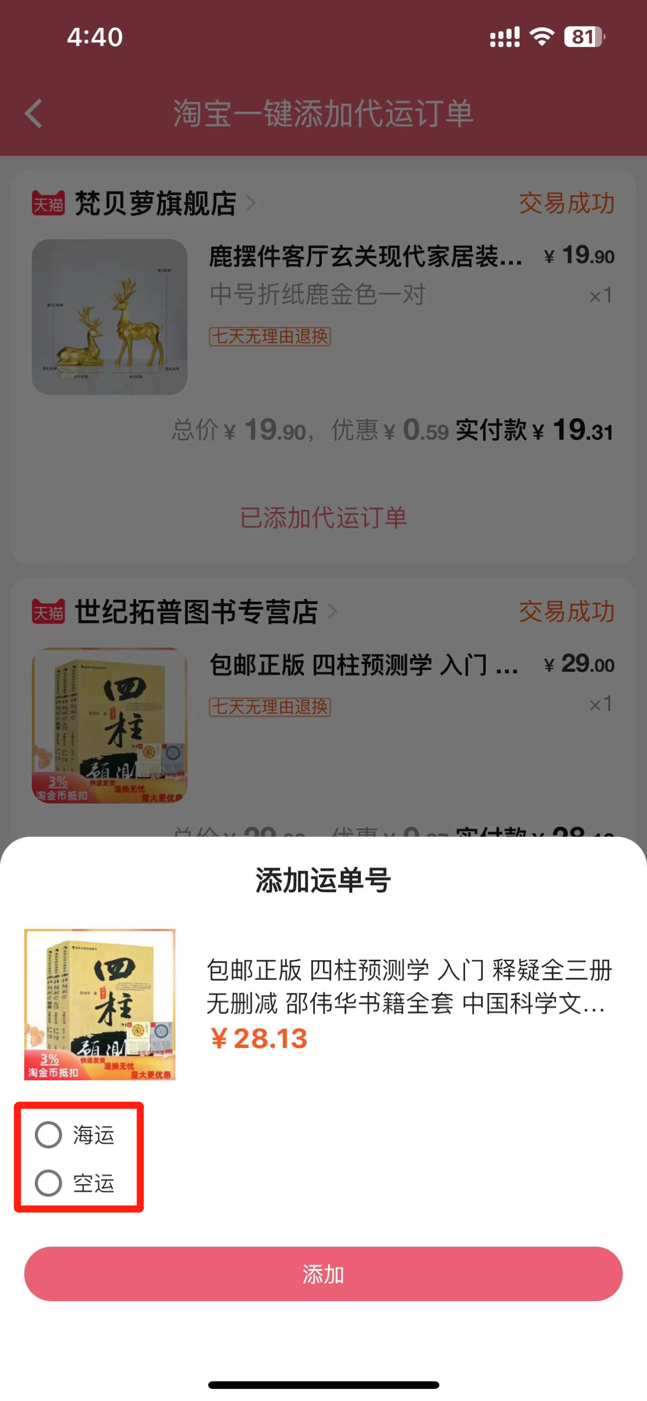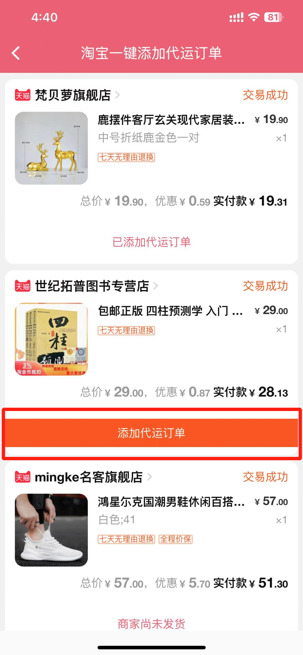 淘宝一键添加代运订单(App)
